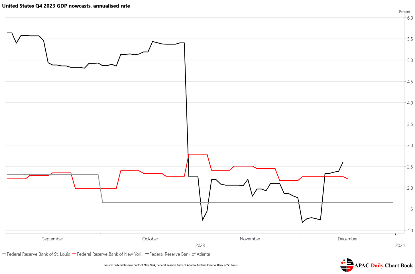FRBNY Q4 GDP nowcast updates at 2.2%, Atlanta Fed at 2.6% and St Louis Fed at 1.7%.